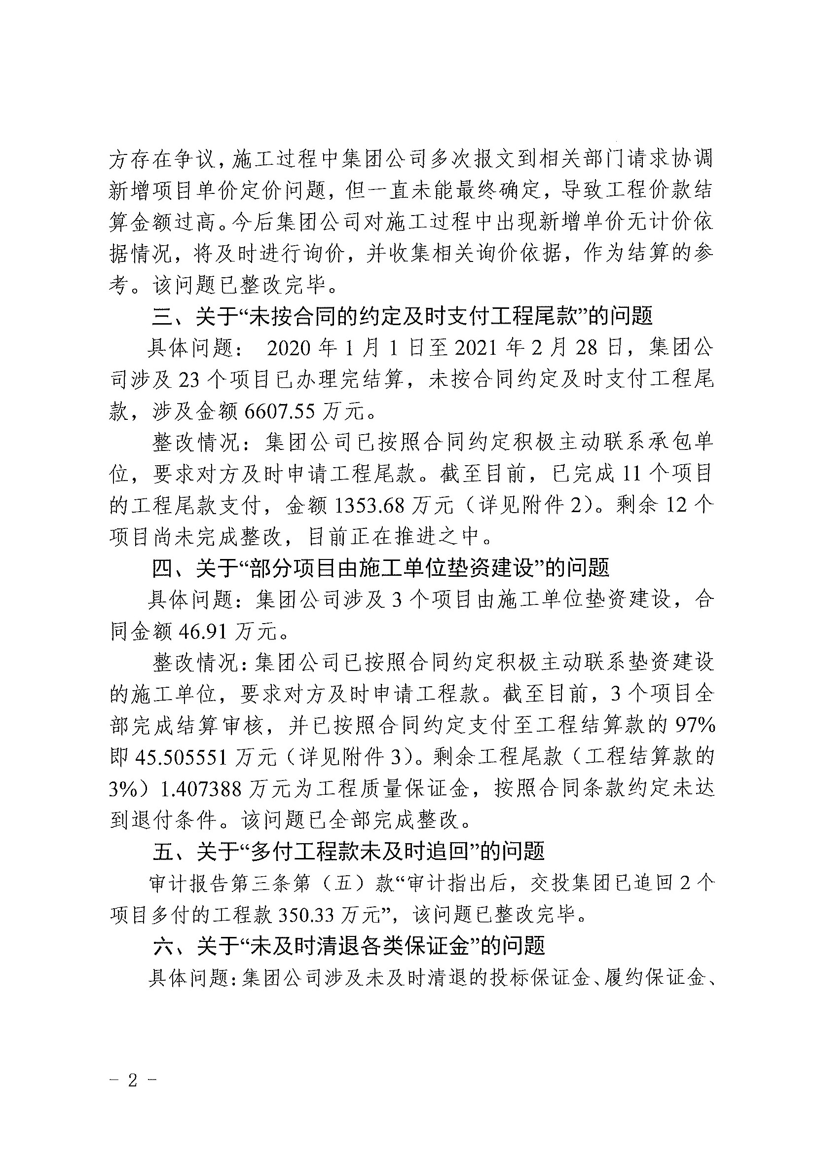 2020年度审计项目发现问题整改公开-南宁市政府投资项目工程结算情况专项审计调查