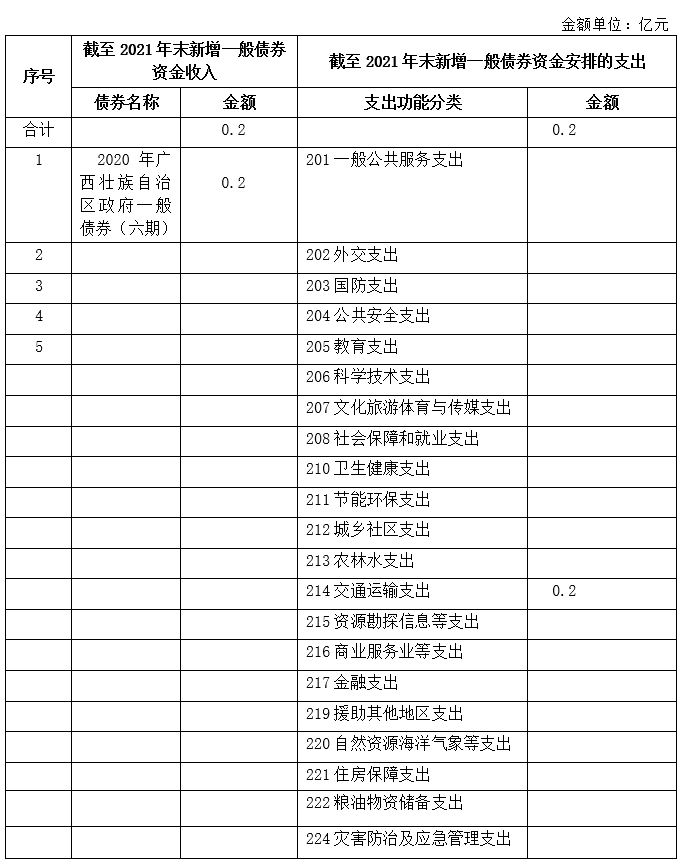 截至2021年末发行的新增政府一般债券情况表