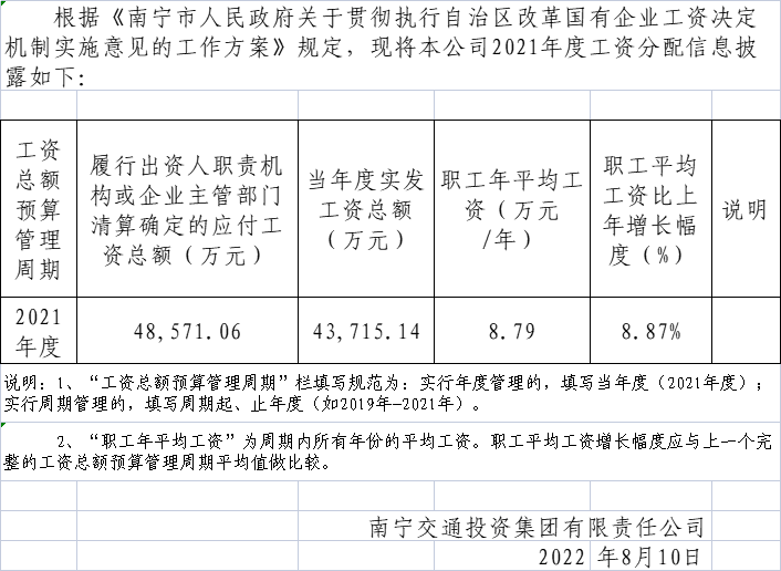 2021年度南宁市国有企业工资分配信息披露表