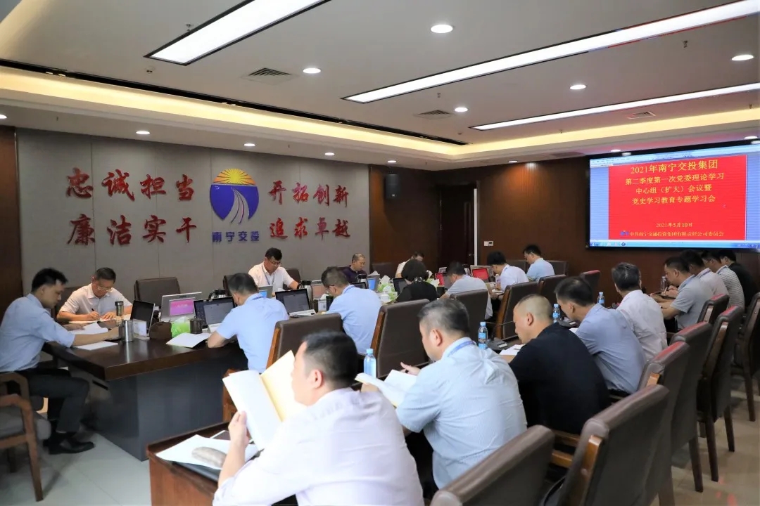 5月10日,日本av 党委召开第二季度第一次党委理论中心组学习(扩大)会议,再次传达学习习近平总书记视察广西时的重要讲话和重要指示精神,以及中央、自治区、南宁市有关会议精神,集团公司领导杨涟、张玉波、谢万升、林海松、罗维松、黄海燕、周宏、秦胜友,集团公司总法律顾问、董事长助理、总经理助理,以及各子公司、各部门负责人参加会议。