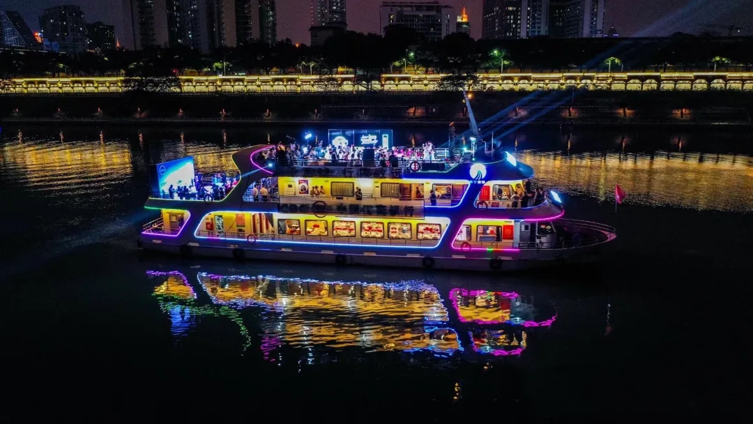外地游客选择乘船游览邕江,不仅可以享受到专业讲解服务,更好地了解邕江景观的文化内涵,还能够在移步换景间欣赏京族特色独弦琴表演,在光影变化中,尽享邕城的动态魅力,是全方位深度游南宁的绝佳选择。
