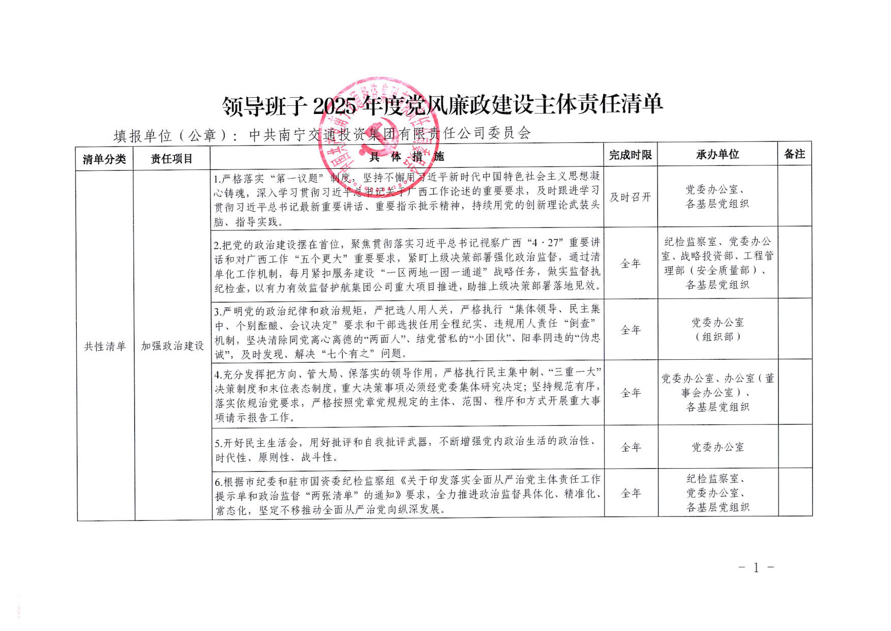 日本av 领导班子2025年度党风廉政建设主体责任清单