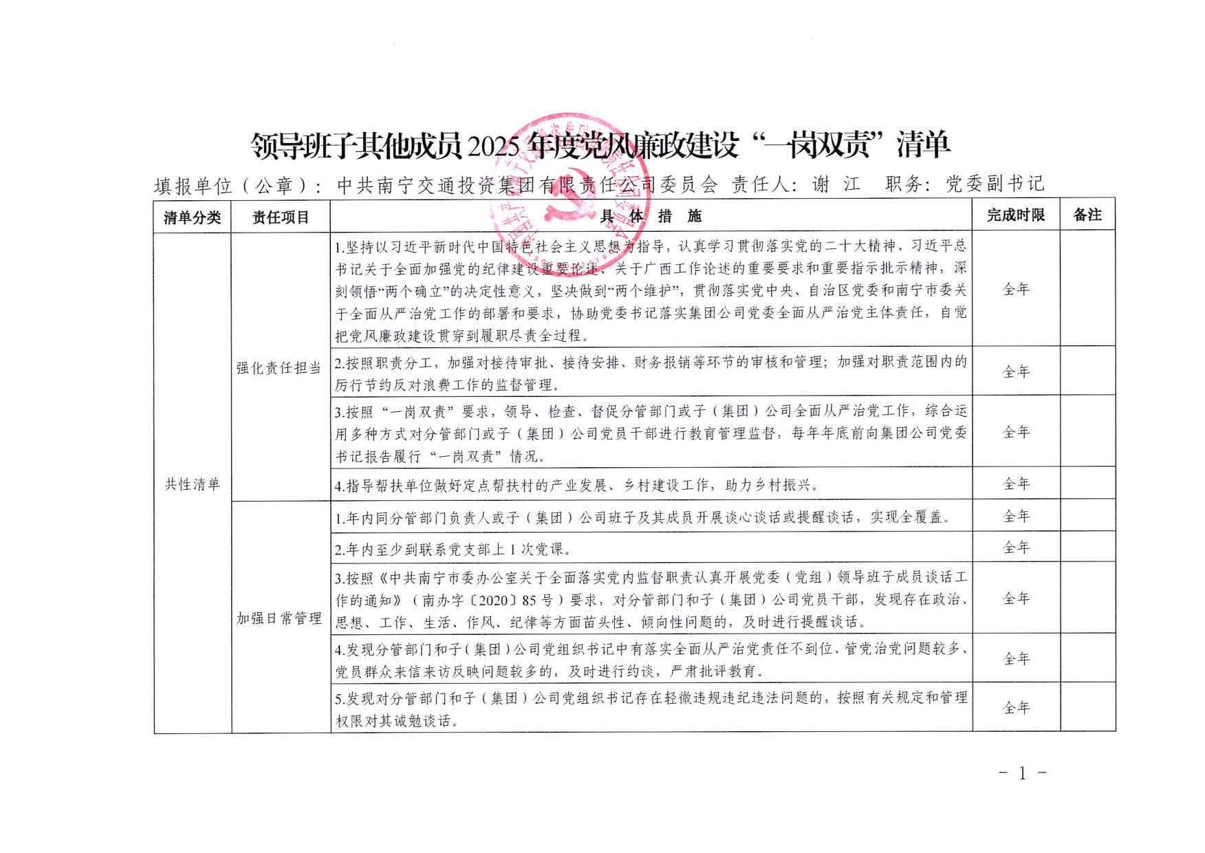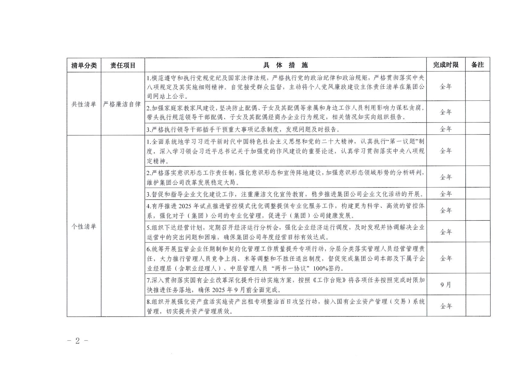 日本av 领导班子其他成员2025年度党风廉政建设“一岗双责”清单(一)