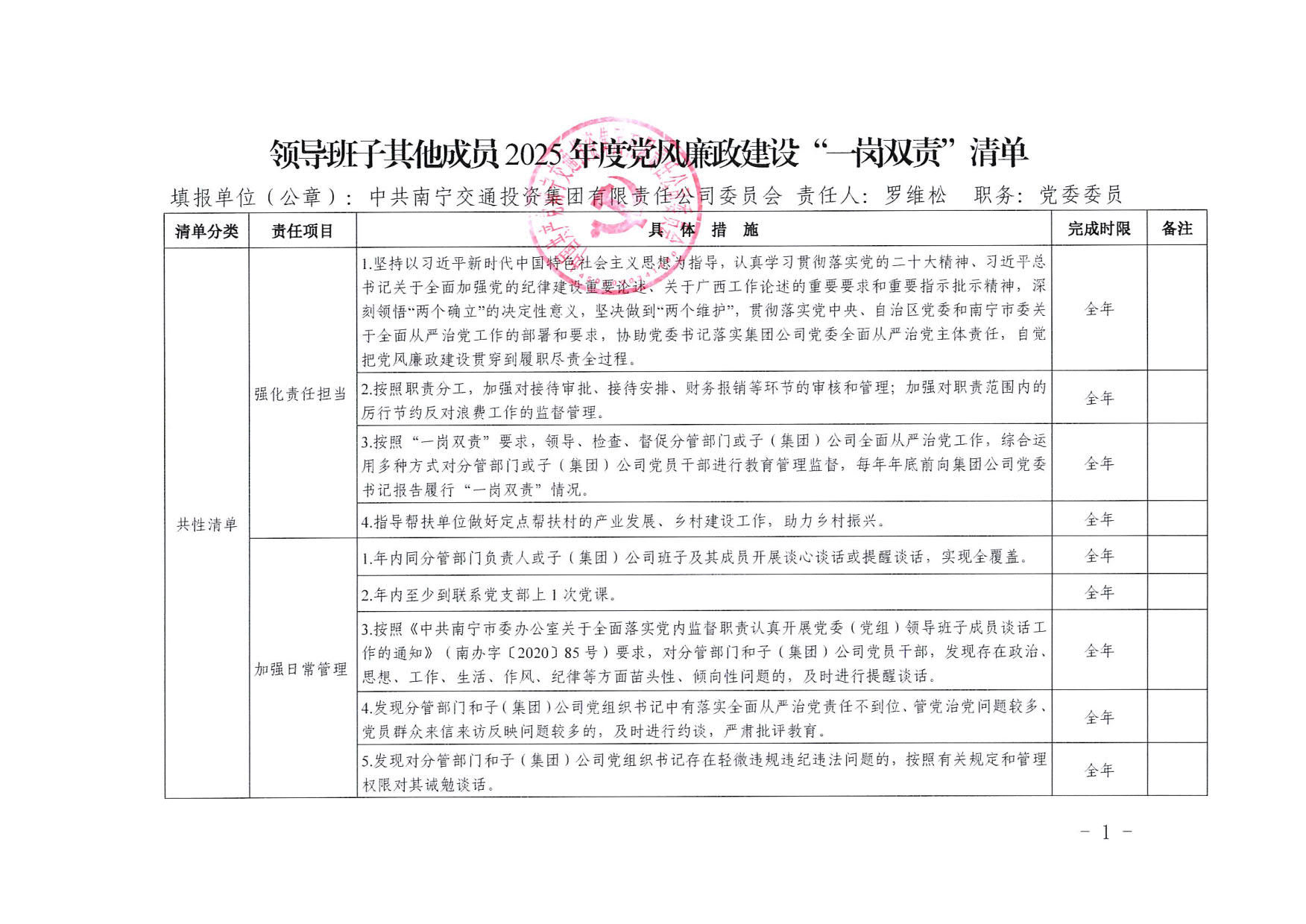 日本av 领导班子其他成员2025年度党风廉政建设“一岗双责”清单(五)
