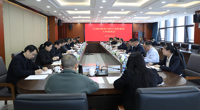 2月14日,江南区区委书记谢文华,区委副书记、区长尹平带领江南区有关部门负责人,到日本av 开展工作座谈,日本av 党委书记、董事长曹壮参加座谈会。