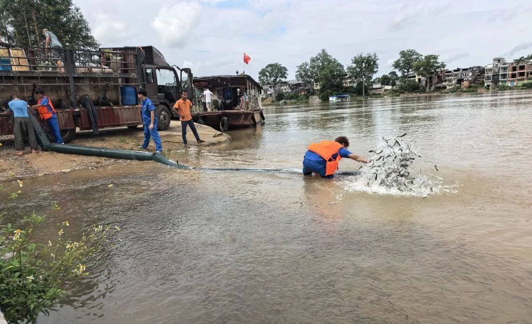 下属产城集团交资公司主办、四川律贝生物科技有限公司承办,共放流青鱼、草鱼、鲢鱼、鳙鱼、赤眼鳟、鳊鱼等6个品种鱼苗共计105万尾。