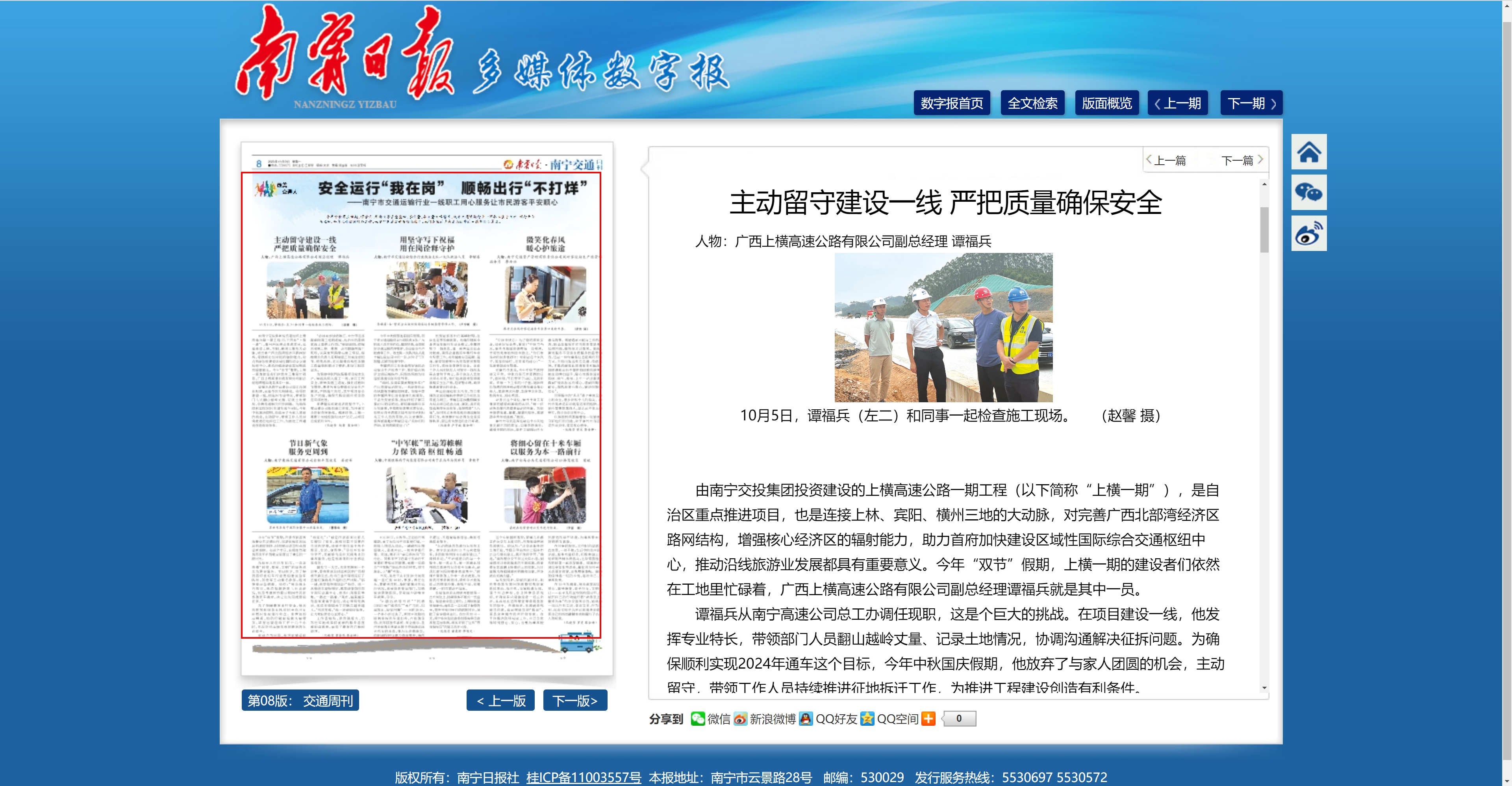 10-09主动留守建设一线 严把质量确保安全-广西上横高速公路有限公司副总经理 谭福兵
