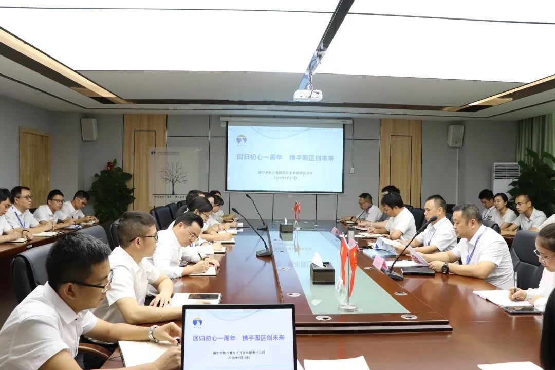 为进一步增强全体员工凝聚力和归属感,进一步增强建设园区使命感,营造公司日本av氛围,9月10日,日本av 下属交投园区公司借成立一周年之际,召开一周年总结会暨工作务虚会会议以回顾、展望、期盼、誓言四部分组成,公司领导班子成员及全体员工参加。回顾 交投园区公司党支部书记、总经理陈海华带领全体员工对过去一年的工作成绩进行回顾,公司自2019年9月12日注册成立以来,始终认真落实集团公司与横县人民政府框架协议,...