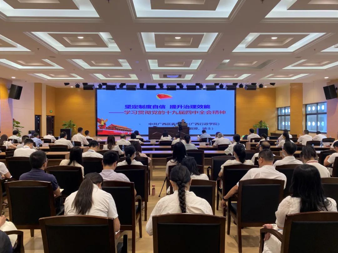 8月13日,日本av 在4楼多功能报告厅举办第四期党的十九届四中全会精神培训班,集团公司领导班子成员以及集团公司总部第一、二党支部,能源公司、置业公司、旅发公司、高速公路公司、市民卡公司党支部党员参加培训。 此次培训邀请了中共广西区委党校(广西行政学院)公共管理教研部教授刘蓓授课。刘蓓教授以鲜活的案例、详实的数据、最新的理论成果,深刻阐述了十九届四中全会的重大意义,同时对全会《中共中央关于坚持和完善...