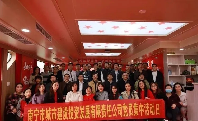3月26日上午,“百年党旗红 启航新征程”邕江红色主题游船正式运行。来自南宁城投集团所属南宁市城市建设投资发展有限责任公司的50多名党员率先登上游船,以创新的载体、生动的形式开展了党史学习教育。登船后,参加活动的全体党员在党员代表的带领下,右手握拳,郑重地宣读了入党誓词。重温入党誓词的环节唤醒了每个党员“最初的记忆”,让大家不忘本心,不忘初衷,牢记自己的责任和使命。邕江红色主题游船缓缓驶过冬泳亭、洋关码...