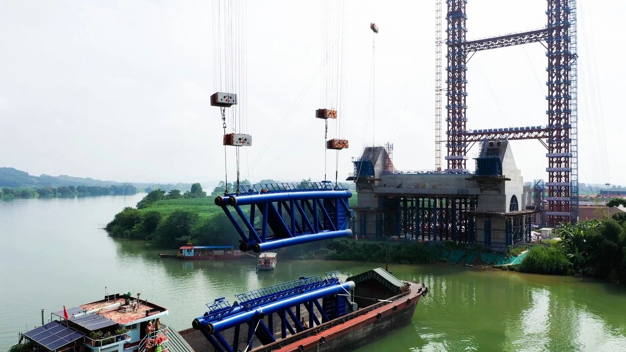 南宁南过境线公路上正右江特大桥首节拱肋顺利安装