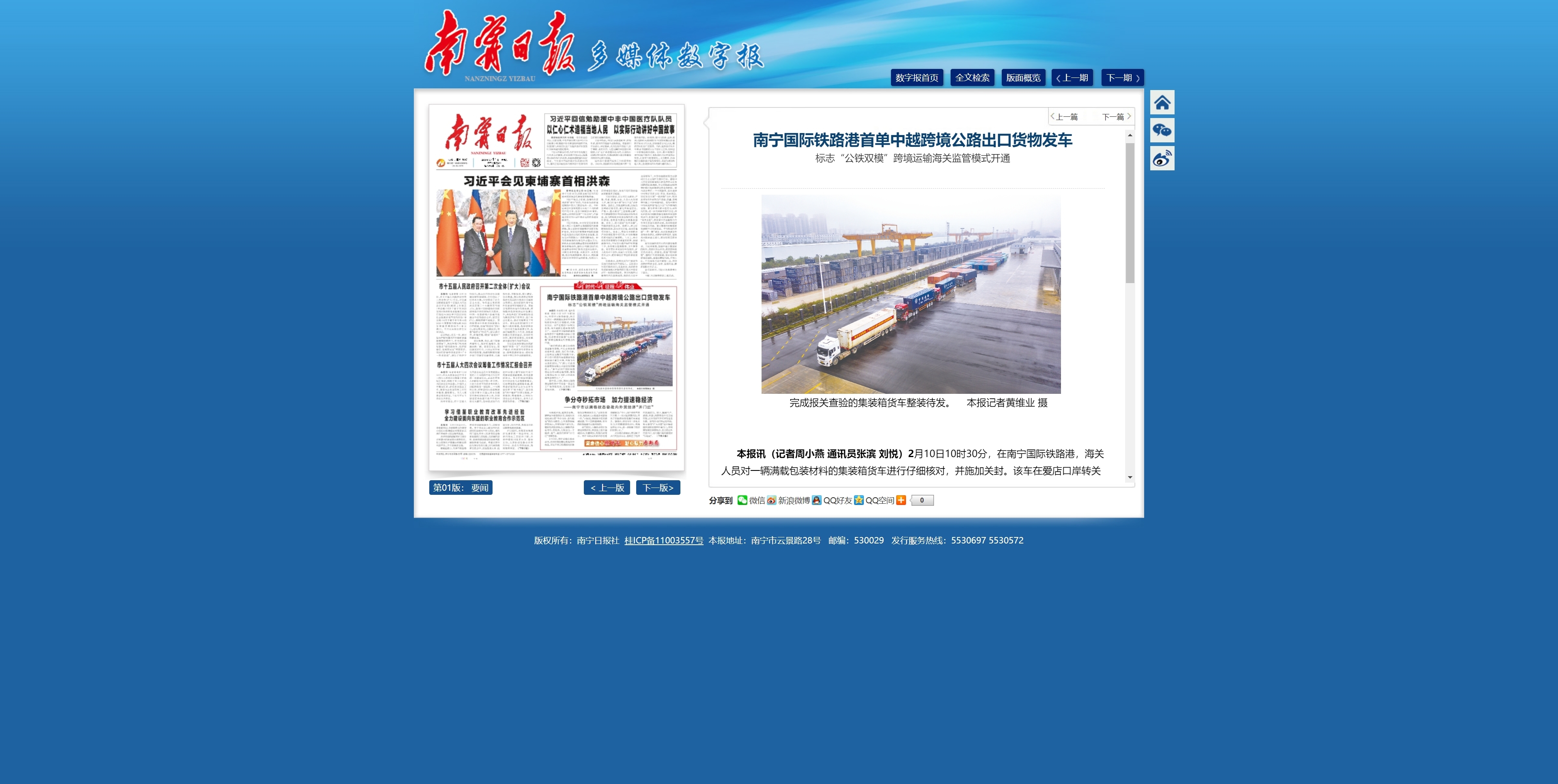 02-11南宁国际铁路港首单中越跨境公路出口货物发车 标志“公铁双模”跨境运输海关监管模式开通