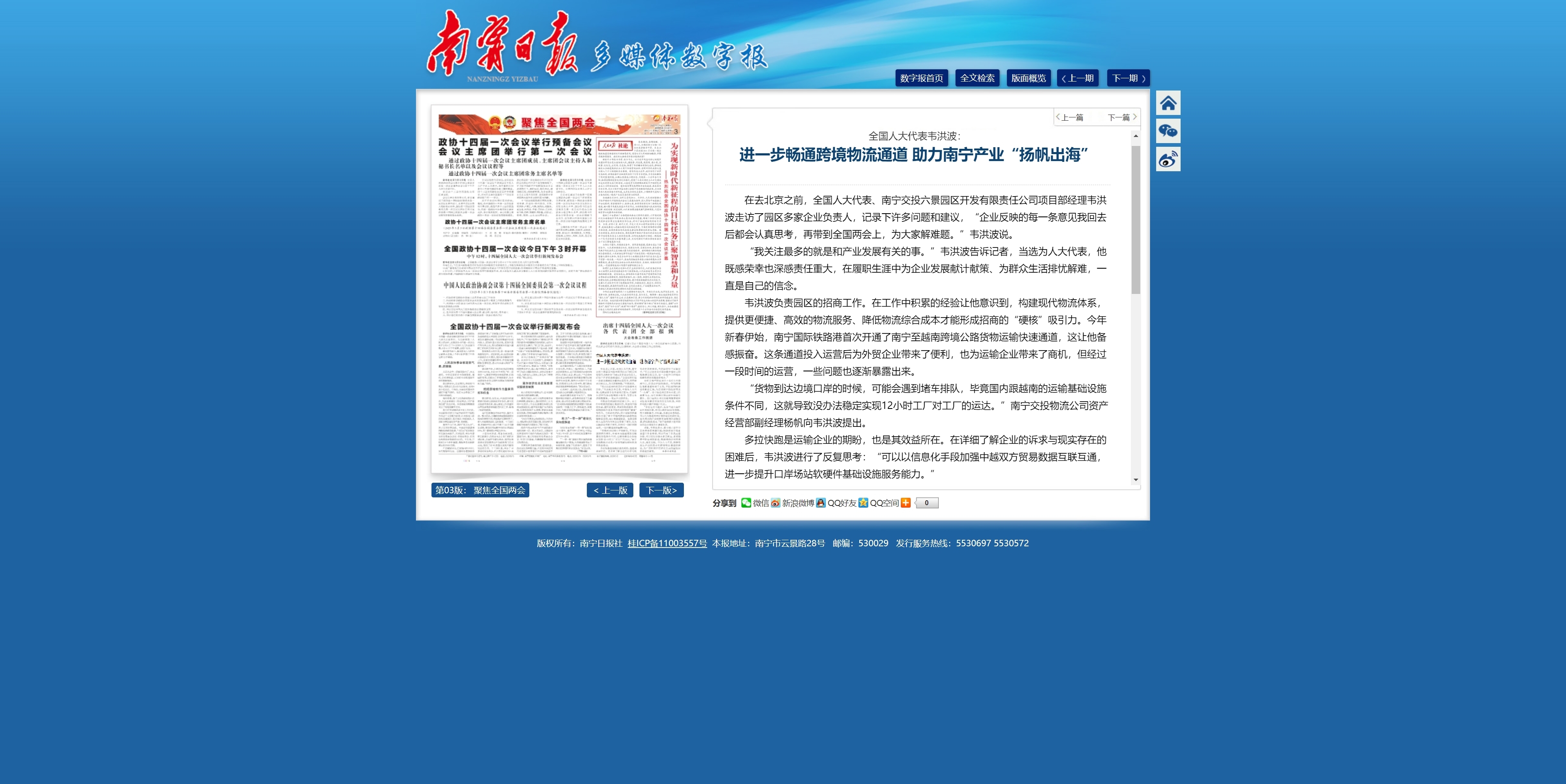 03-04全国人大代表韦洪波:进一步畅通跨境物流通道 助力南宁产业“扬帆出海”